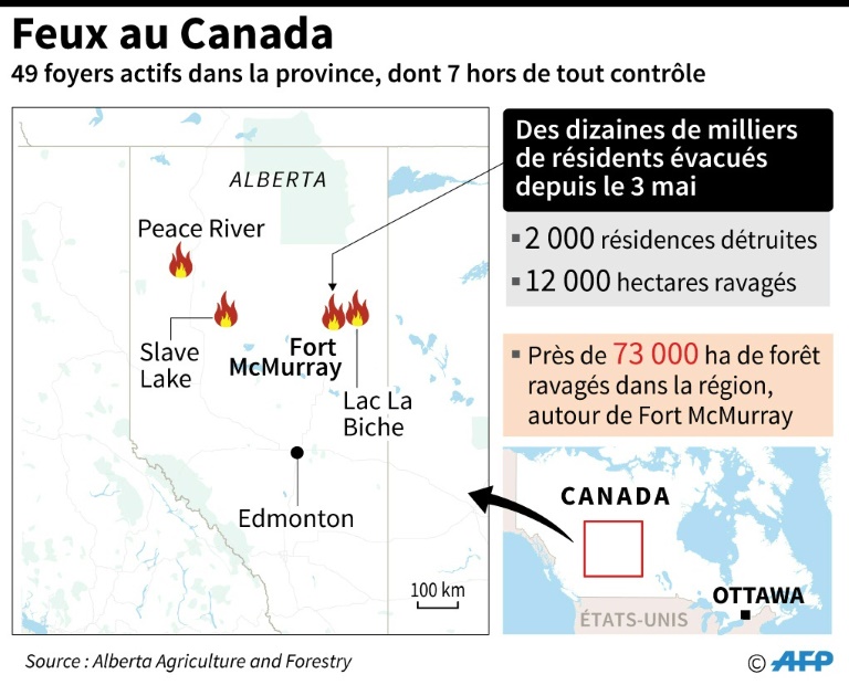 Les feux de forêts monstrueux ont ravagé depuis le 1er mai plus de 100.000 hectares, selon Chad Morrisson, directeur du service des incendies de l'Alberta, une superficie équivalente à dix fois celle de Paris.