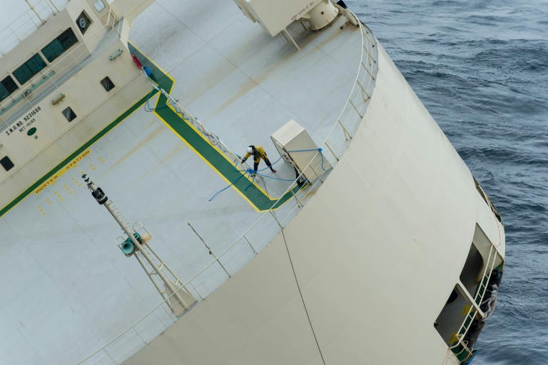 "La difficulté ici est une combinaison de plusieurs choses, le vent, la houle, et l'angle d'inclinaison du bateau, qui revient à escalader une montagne, mais qui bouge", a expliqué à l'AFP un porte-parole de Smit Salvage. Mais si une fenêtre météo permet de passer une ligne, "remorquer le bateau est faisable", selon lui.