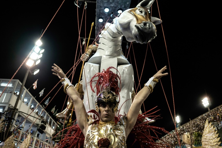 "Malgré les problèmes de notre pays, nous ne pouvons perdre l'amour de cette fête et quoiqu'il arrive c'est encore le pays de la samba", déclare à l'AFP Luanny Victoria, 19 ans, qui revêt un costume doré avec d'énormes plumes vertes et s'apprête à défiler pour Unaio da Ilha, la deuxième école à passer.