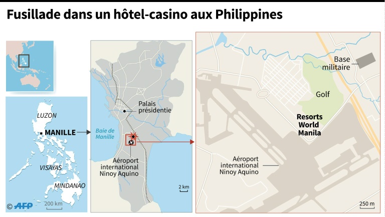 L'homme masqué a fait irruption dans l'hôtel-casino Resorts World Manila, près de l'aéroport de Manille, tirant dans l'établissement avec un fusil d'assaut avant de déclencher un incendie en mettant le feu à une table de jeu.