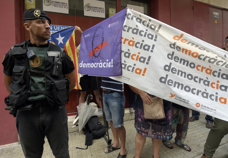 Après une imprimerie vendredi, la Garde civile a perquisitionné samedi les locaux du petit journal d'une localité catalane, qui serait soupçonné d'avoir fait imprimer des bulletins. Aussitôt des manifestants se sont massés devant ces locaux, aux cris de "nous voterons", "indépendance!", dans la petite ville de Valls, adhérente à l'Association des municipalités indépendantistes.