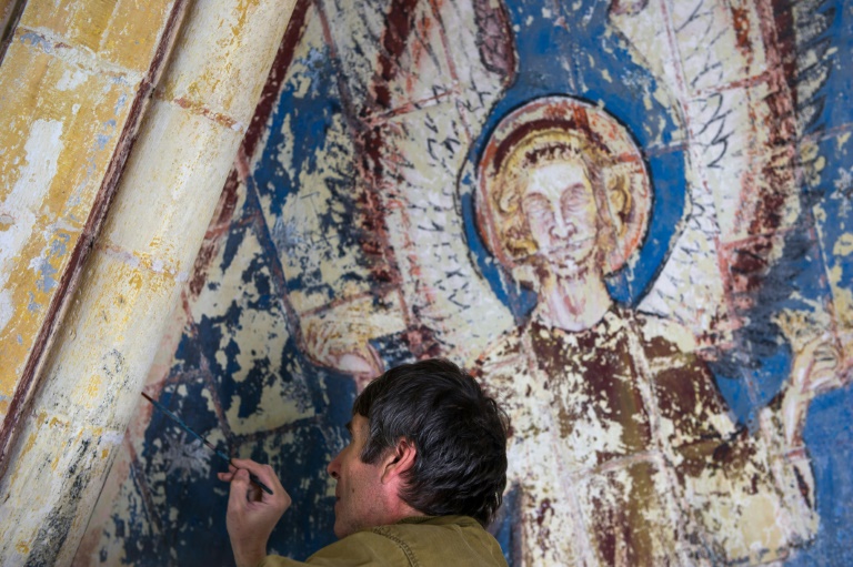 "On a été obligé de recoller la peinture au mur au fur et à mesure de l'avancement, on avait une seringue dans une main, un scalpel dans l'autre", détaille-t-il.