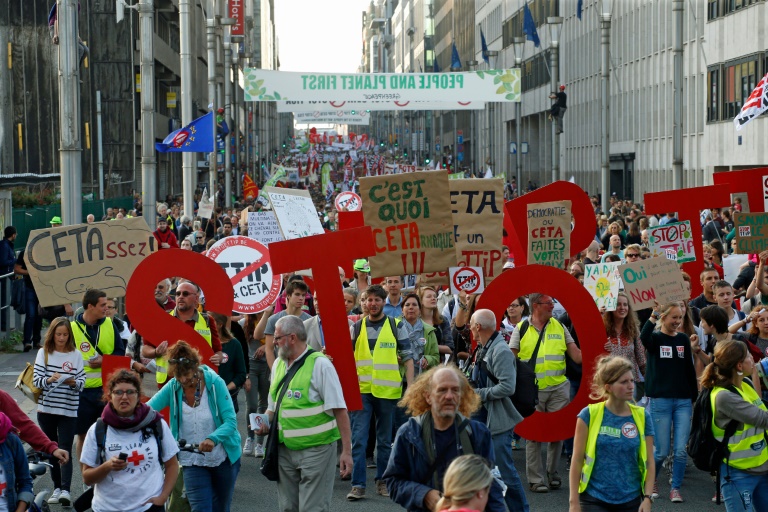 La décision mercredi soir par le Parlement de la Communauté française de Belgique, de ne pas accorder son aval, obligatoire, au gouvernement fédéral pour la signature de l'accord Ceta pourrait toutefois bloquer sa mise en oeuvre. La mobilisation d'environ 9.000 personnes fin septembre sous les fenêtres des institutions européennes pour dénoncer les deux traités pourrait avoir porté ses fruits.