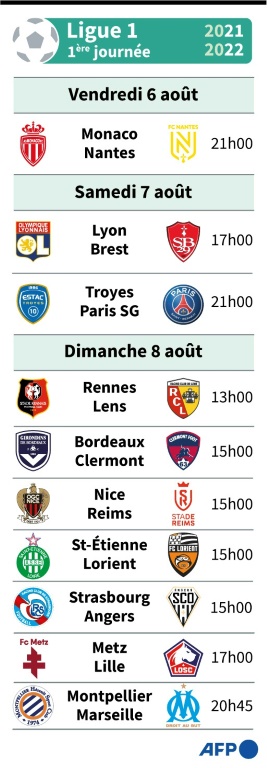 Le football français sûr de rien, sauf du Paris Saint-Germain... La saison 2021-2022 du championnat de France, qui s'ouvre vendredi, s'annonce aussi incertaine que la précédente, entre droits TV contestés et restrictions sanitaires. Mais sur les terrains, le PSG, revanchard, compte bien tuer tout suspense. Une bonne nouvelle avant le coup d'envoi de cette 84e édition du Championnat de France, qui doit désigner le successeur de Lille, sacré en mai à la surprise générale: sauf événement de derniÚre minute, le match d'ouverture entre Monaco et Nantes (21h00) sera joué, devant du public et les caméras de télévision.