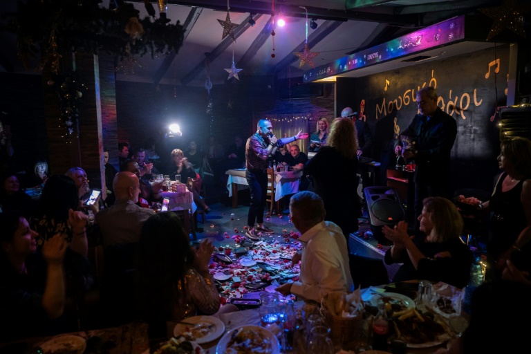 En ce jour de l’Épiphanie, l'une des principales fêtes du calendrier orthodoxe, de grandes tables sont déployées dans une "taverne-bouzoukia" de Peristeri, une banlieue populaire et industrielle d'Athènes.
