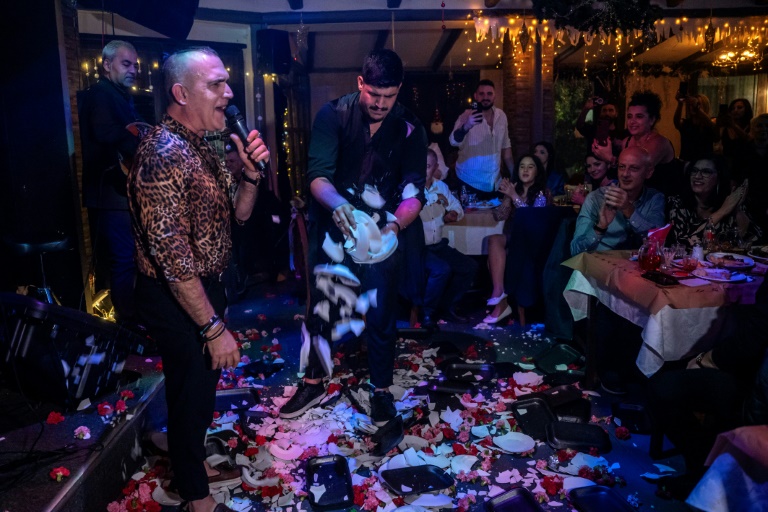 "Pour les clients (briser des assiettes), c'est une manière de se défouler, renchérit Vassilis Miggas, 56 ans, propriétaire de l'établissement. C'est aussi une manière de montrer aux chanteurs: 'Tu es bon, ça me plaît!'".