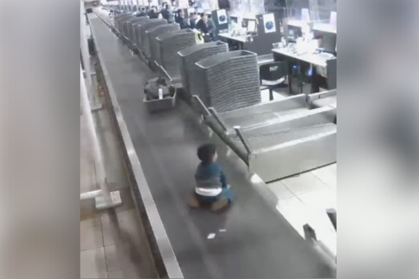 Sur cette vidéo, on y voit l'enfant se glisser sur le tapis et suivre le même circuit que celui des bagages. Sain et sauf, il a rapidement été récupéré.