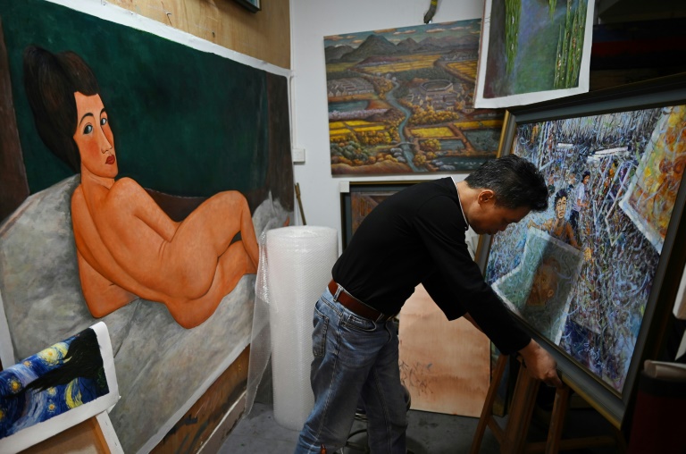 Situé dans le sud du pays, le village compte plus de 8.000 artistes qui, pendant longtemps, se consacraient à la reproduction quasi parfaite de tableaux connus. Leur cadence était telle qu'à la grande époque, trois peintures sur cinq vendues dans le monde provenaient de Dafen. Mais après la crise financière de 2008, leurs exportations ont commencé à chuter, avant le coup fatal en 2020, quand la Chine a fermé ses frontières à cause de la pandémie de Covid-19.Certains artistes ont jeté l'éponge.