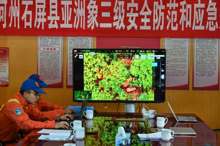 La cellule de crise éléphantesque a été formée en catastrophe en mai dernier alors que le troupeau s'approchait dangereusement de Kunming, la capitale provinciale, et de ses 4,5 millions d'habitants. Sur leurs traces, les surveillants dorment dans la nature, à la belle étoile ou dans leur voiture. Un beau matin de juillet, l'AFP a retrouvé leur éphémère QG dans un village, l'équipe observant sur un grand écran les premières images de drone diffusées par les collègues en première ligne.