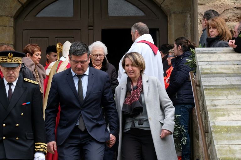 Des gendarmes lourdement armés patrouillent devant l'église et en gardent les accès tandis que des barrières sont installées pour tenir éloignée la presse des habitants pétris d'émotion.