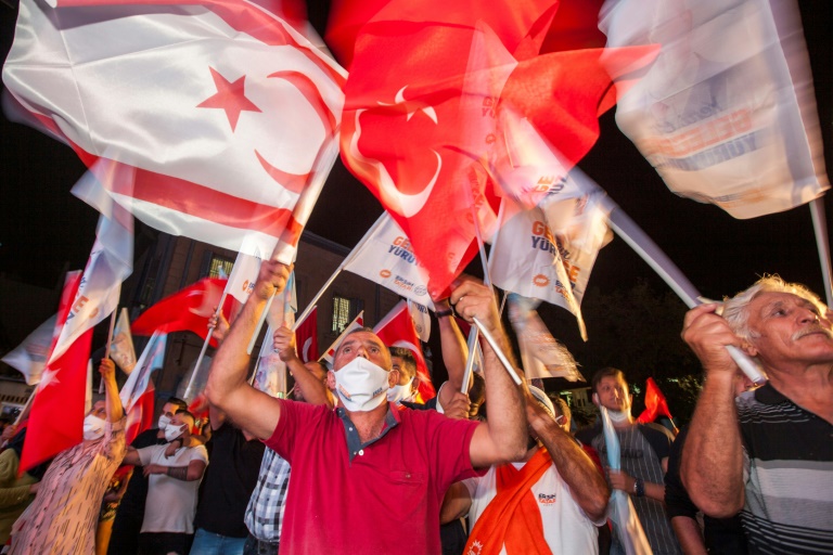 Des centaines de supporters de M. Tatar ont afflué, dont beaucoup sans masque, sur la place où étaient diffusés les résultats à Nicosie-Nord, à grand renfort de musique vantant les mérites de leur champion et brandissant des drapeaux turcs. "Je remercie le peuple chypriote-turc qui m'a élu ce soir avec sa propre démocratie", a déclaré, triomphant, M. Tatar sur une scène, remerciant M. Erdogan tout en condamnant "ceux qui ont utilisé la Turquie comme argument électoral". Il a appelé au rassemblement de la communauté chypriote-turque qui "mérite sa souveraineté" avant que ses soutiens ne se dispersent au son des klaxons.
