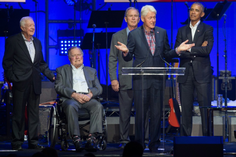Dans une rare démonstration d'unité, les cinq derniers présidents des Etats-Unis sont montés côte à côte samedi sur scène au Texas pour un concert destiné à lever des fonds pour les victimes des ouragans qui ont ravagé le sud du pays et les Caraïbes.