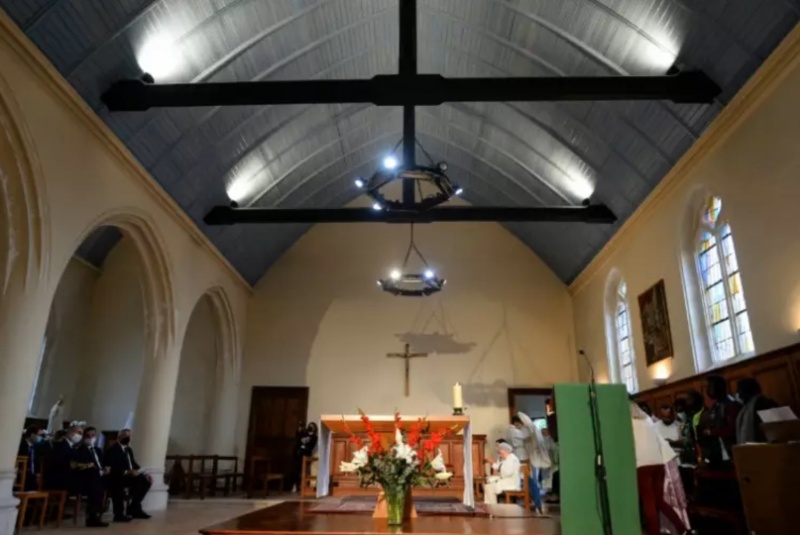 La cérémonie s'est déroulée en présence des quelques fidèles qui assistaient à la messe célébrée par le père Hamel lors de l'attaque de 2016. Parmi ceux-ci, Guy Coponet, lui-même grièvement blessé, et dont l'épouse, à ses côtés lors de l'attentat, est décédée il y a quelques semaine, a rappelé Mgr Lebrun.