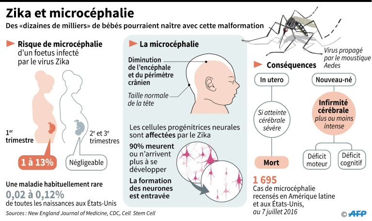 Il s'agit essentiellement de graves anomalies du développement cérébral (microcéphalies) chez les bébés nés de mères infectées (plus de 1.600 bébés nés à ce jour au Brésil avec ces malformations) et de complications neurologiques.