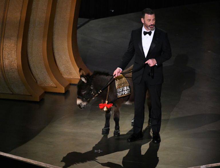 L'un est la star sous stupéfiants du film "Crazy Bear" ("Cocaine Bear" en V.O.), l'autre est le compagnon attendrissant des vedettes irlandaises des "Banshees d'Inisherin": un ours et un âne sont tous les deux montés sur scène dimanche pour une cérémonie bien plus animalière qu'à l'accoutumée.