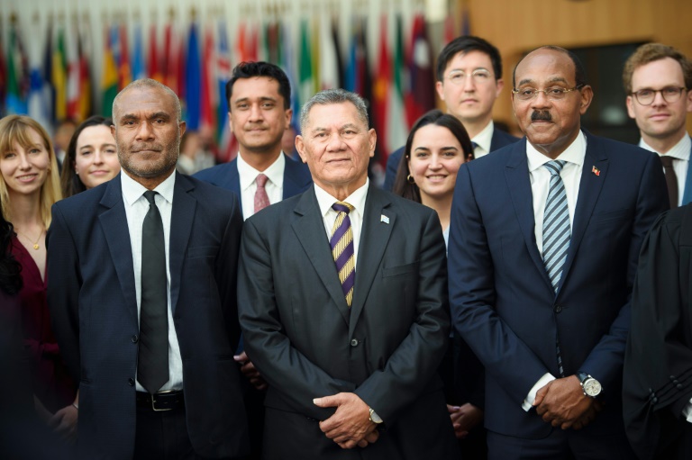 Plusieurs représentants des nations requérantes (Antigua-et-Barbuda, Bahamas, Niue, Palaos, Saint-Kitts-et-Nevis, Sainte-Lucie, Saint-Vincent-et-les Grenadines, Tuvalu et Vanuatu) se sont succédé dans la matinée, devant les vingt-deux juges en robe bleu.