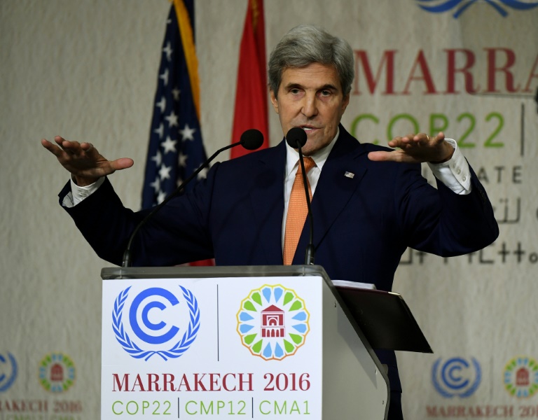 John Kerry, le secrétaire d'Etat américain, appuyé par des centaines d'entreprises de son pays, a affiché mercredi à la COP22 à Marrakech sa foi dans la transition vers les énergies renouvelables et mise sur l'économie pour faire revenir Donald Trump sur ses positions climatosceptiques.