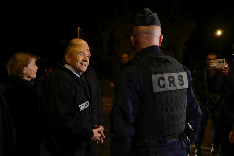 "C'est un bel exemple de courage et de dignité et je crois que tous nos concitoyens devraient remercier les policiers, les CRS et les gendarmes qui veillent sur leur sécurité", a dit le ministre qui était accompagné du Directeur général de la police nationale (DGPN) Eric Morvan et de la préfète du département Josiane Chevalier.