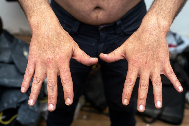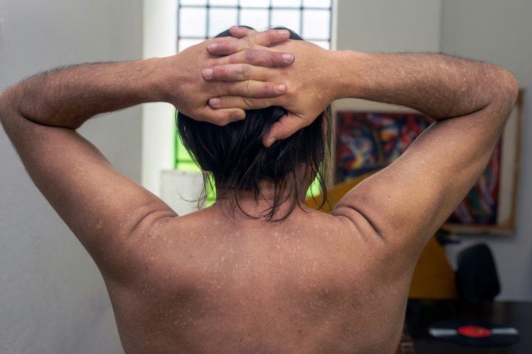 Jorge Rodriguez* montre son torse, son dos, ses bras. Sa peau témoigne de l'"enfer" de la nécrose cutanée due à une cocaïne frelatée : elle est parsemée de cicatrices de la taille de lentilles. "Les démangeaisons ne me laissaient rien faire, ni lire, ni écrire, ni l'amour (...) Cela empoisonne la vie", se souvient cet homme de 50 ans, chez lui dans le centre de Bogota. "Le lit tâché de sang, les chemises... C'est une maladie honteuse". A la fin des années 2010, son corps s'est couvert de boutons, transformés en lésions.