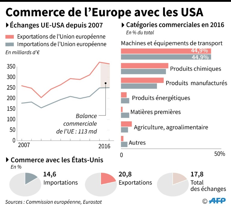 Recevant à la Maison Blanche le Premier ministre suédois Stefan Löfven, le président américain s'en est pris aux Européens qui "rendent pratiquement impossible pour nous de faire des affaires avec eux et pourtant envoient, eux, leurs voitures et tout le reste aux Etats-Unis". "L'Union européenne ne nous a pas bien traités. Et c'est une situation commerciale très, très injuste", a-t-il ajouté.