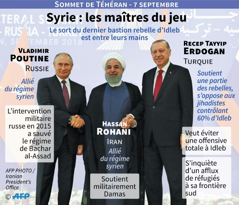 Un sommet marqué par une joute verbale entre les présidents turc Recep Tayyip Erdogan et russe Vladimir Poutine, le premier plaidant à cor et à cri pour un accord de "cessez-le-feu" et mettant en garde contre un "massacre" en cas d'assaut des troupes loyalistes, soutenues par Téhéran et Moscou.