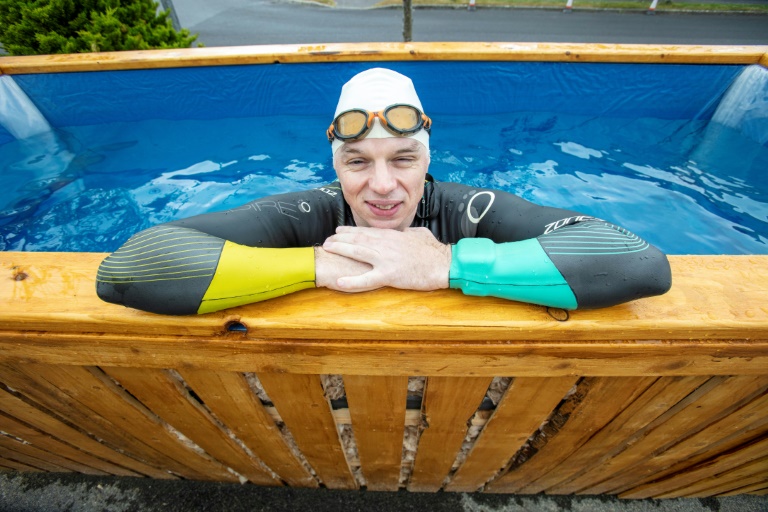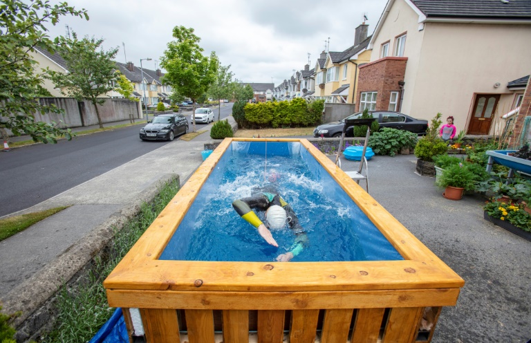 "Même si je devais aller nager en eaux libres, je ne pourrais pas le faire parce que normalement, si je suis attaché à un guide, les liens sont d'un mètre", explique-t-il dans le jardin de sa maison de Tuam, dans la région de Galway. A la place, il est attaché à des cordes oranges dans sa piscine personnelle, de la taille d'une voiture familiale.