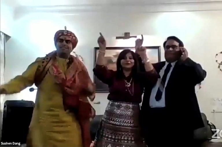 Il y a bien eu quelques petits incidents techniques: les micros de certaines personnages âgées de la famille ont été activés par erreur, ou des animaux domestiques sont soudain apparus à l'écran. Mais dans l'ensemble l'ambiance festive était au rendez-vous, culminant dans une chorégraphie de danse bollywoodienne effectuée par des cousins de l'autre côté de l'écran.