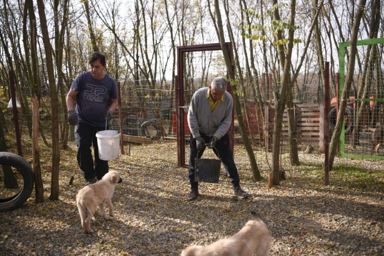 Sous un pâle soleil d'automne, une quarantaine de rescapés de la rue aboient avec enthousiasme à l'approche de Mentor Hoxha, 55 ans, le fondateur albanais du refuge et de Slavisa Stojanovic, un ex-gardien de prison serbe de 57 ans.