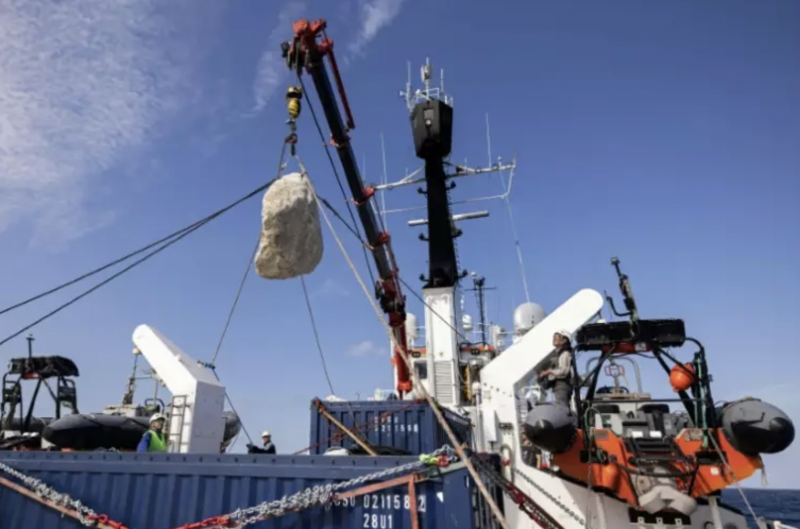 A bord de l'Arctic Sunrise, le navire océanographique du groupe de défense de l'environnement, les militants ont largué jeudi, au cœur d'une zone marine officiellement protégée, 18 blocs de calcaire pesant entre 500 et 1.400 kilos.