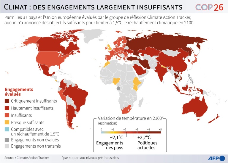 "La catastrophe climatique frappe toujours à la porte", a averti le patron de l'ONU, Antonio Guterres. "Nous avons maintenu +1,5°C à notre portée (...) mais le pouls est faible", a déclaré le président de la COP26, le Britannique Alok Sharma. "Les émissions mondiales doivent diminuer, immédiatement, rapidement, dans l'urgence absolue", alors qu'elles continuent à augmenter, a plaidé Joeri Rogelj, de l'Imperial College de Londres, estimant que "jamais la science n'avait été aussi présente dans les décisions d'une COP".