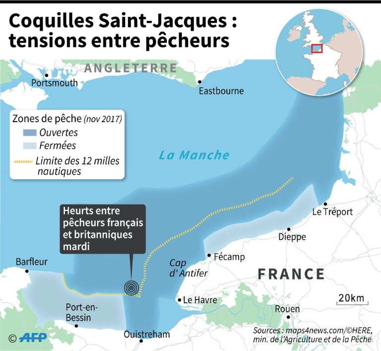 PĂȘcheurs français et britanniques se disputent une zone de pĂȘche situĂ©e dans la baie de Seine. Des altercations ont Ă©clatĂ© en mer la semaine derniĂšre quand une trentaine de navires français ont essayĂ© d'empĂȘcher cinq navires britanniques de pĂȘcher le prĂ©cieux mollusque, moyennant jets de pierre et insultes, nouvel Ă©pisode d'une guerre au long cours.