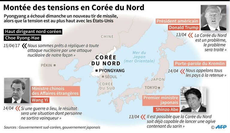 Cette rhétorique belliqueuse tend cependant à ne pas rassurer les Sud-coréens et Japonais, voisins de Pyongyang. Mardi, le Premier ministre nippon, Shinzo Abe, a appelé à privilégier une solution diplomatique et pacifiste. Et c'est par la Chine que le dialogue peut être établi, comme l'a reconnu M. Trump, mettant sous le boisseau les critiques envers la politique économique de Pékin.