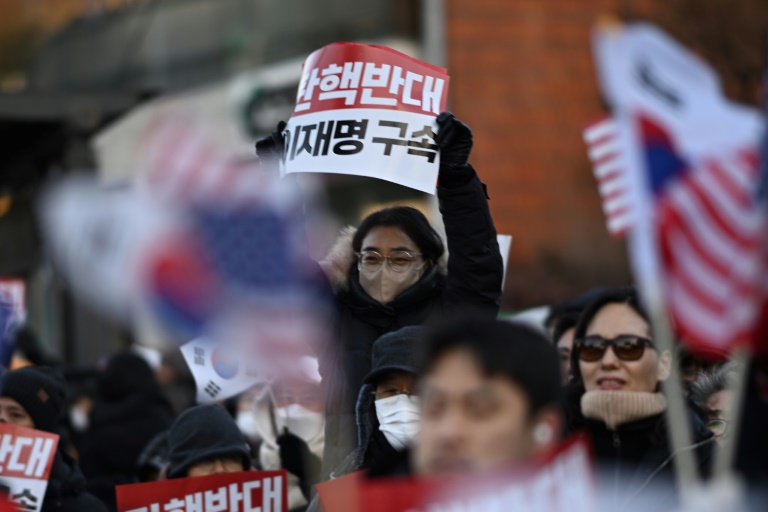 Des centaines de partisans inconditionnels de M. Yoon, parmi lesquels des youtubeurs d'extrême droite connus et des prédicateurs chrétiens évangéliques, ont campé près de la résidence présidentielle toute la nuit de jeudi à vendredi, certains organisant des séances de prière nocturnes.