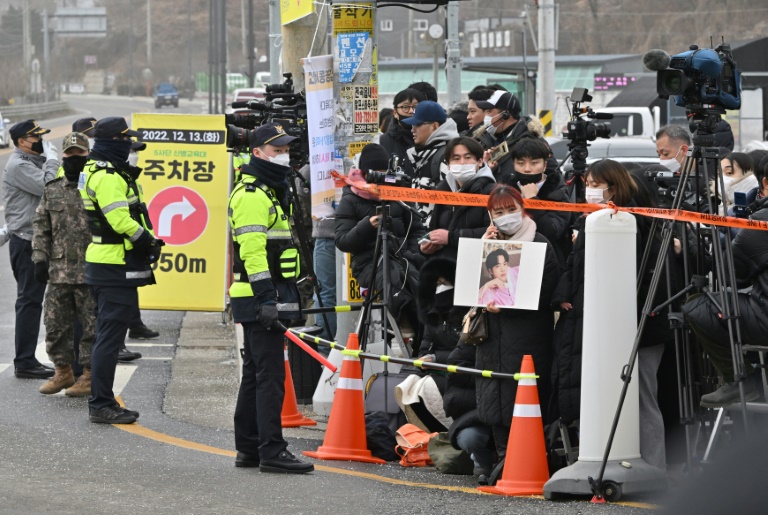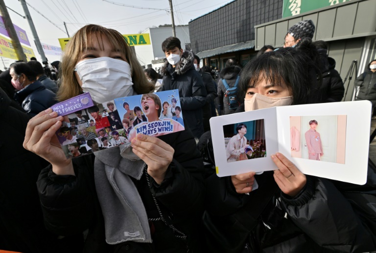 Des centaines de journalistes et de fans de BTS se massaient mardi à l'entrée du camp d'entraînement de Yeoncheon, à 40 km au nord de Séoul, en attendant l'arrivée de leur idole.