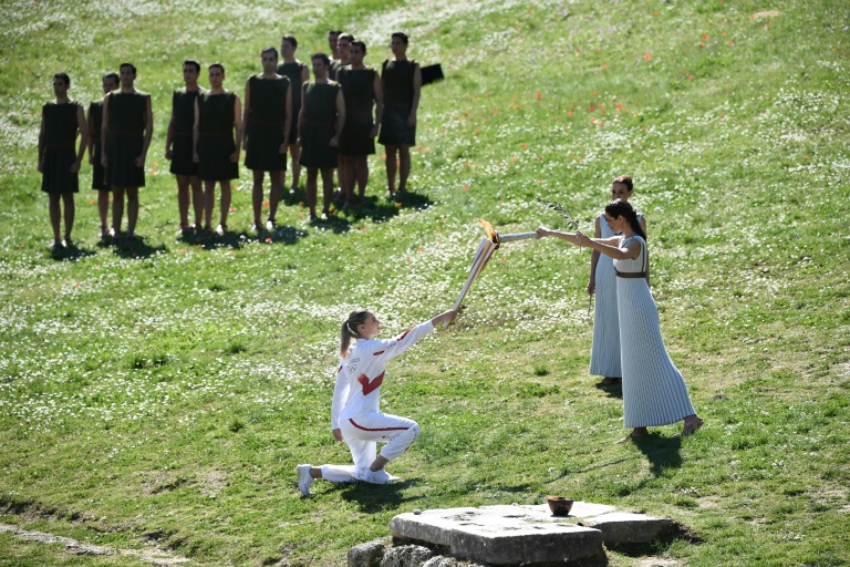 Pendant ce temps-là , sur le site antique grec d'Olympie recouvert de pâquerettes et autres fleurs printanières, sous un ciel sans nuage et le chant des oiseaux, la flamme olympique a été allumée, certes sans spectateurs, mais comme si de rien n'était ou presque, à un peu plus de quatre mois des JO-2020, dont la cérémonie d'ouverture est prévue le 24 juillet à Tokyo. Seule une centaine d'invités a été réunie.