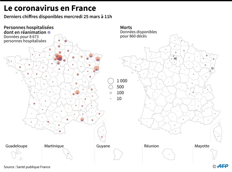 La France doit s'attendre à des "jours difficiles", a souligné le directeur général de la Santé (DGS), Jérôme Salomon, en annonçant un total de près de 3.000 patients en réanimation (2.827, soit 311 de plus en 24 heures): "c'est un nombre considérable, exceptionnel dans un temps aussi bref et pour une seule maladie".