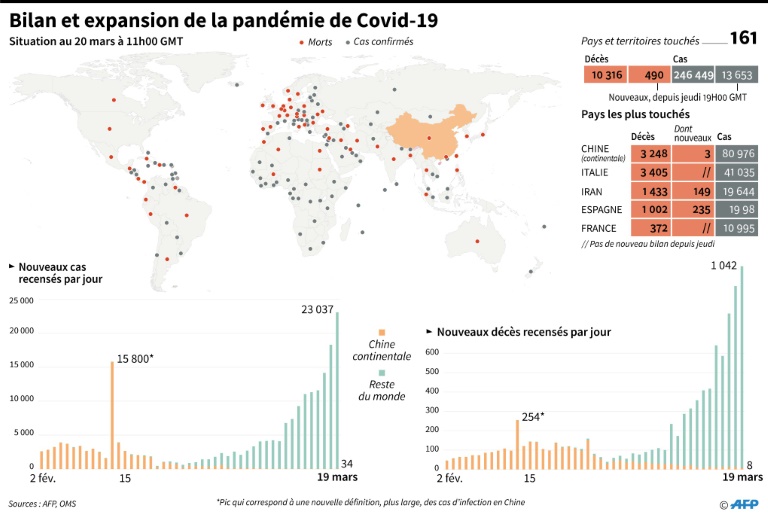 A l'inverse, sur 255.000 cas positifs recensés dans le monde depuis le début de la pandémie, près d'un tiers est déjà guéri, selon l'université américaine Johns Hopkins, qui tient un décompte quotidien.