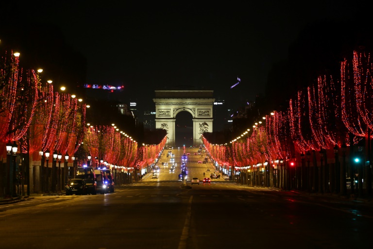 Comme un symbole de ce réveillon très particulier, à Paris, l'avenue des Champs-Elysées, habituellement noire de monde le 31 décembre, est restée vide, à l'exception de rares véhicules ou livreurs à vélo.