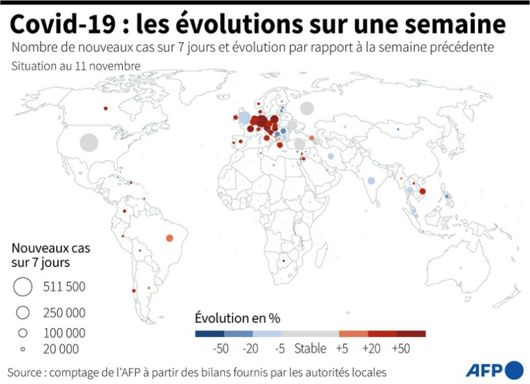 L'Organisation mondiale de la santé (OMS) a appelé à des efforts de vaccination plus ciblés pour s'assurer que les publics vulnérables reçoivent des injections. Selon l'OMS, près de deux millions de cas de coronavirus ont été enregistrés la semaine dernière en Europe, faisant à nouveau du continent l'épicentre de la pandémie. C'est "le plus grand nombre de cas enregistrés en une seule semaine dans la région depuis le début de la pandémie", a déclaré le patron de l'organisation, Tedros Adhanom Ghebreyesus.