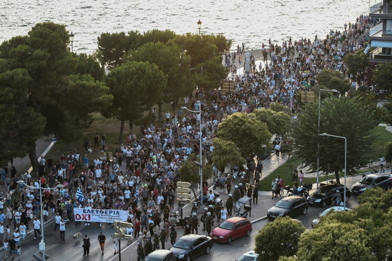 En Grèce, environ 4.000 personnes, selon la police, ont protesté dans le centre d'Athènes contre les mesures gouvernementales annoncées pour freiner la propagation du variant Delta du coronavirus.
