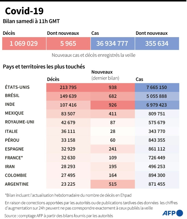 En Europe, les restrictions se multiplient face à une situation qui s'aggrave, tandis qu'au Brésil le seuil des 150.000 morts a été franchi dans une région Amérique latine et Caraïbes qui compte désormais plus de 10 millions de cas. Avec une hausse de près de 75.000 nouveaux cas, le nombre total de personnes contaminées est passé à 7,05 millions en Inde.