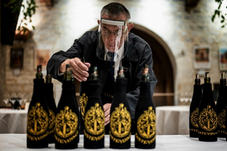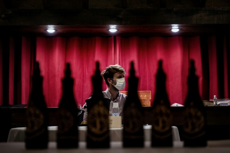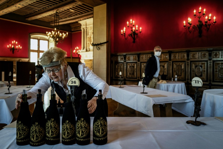 "Il n'était pas question qu'il n'y ait pas de tastevinage": malgré le coronavirus, les Chevaliers du tastevin ont tenu vendredi au château du Clos de Vougeot (Côte d'Or) leur 105e dégustation, véritable institution bourguignonne. Avec 658 bouteilles de vin, 75 dégustateurs et du gel hydroalcoolique.