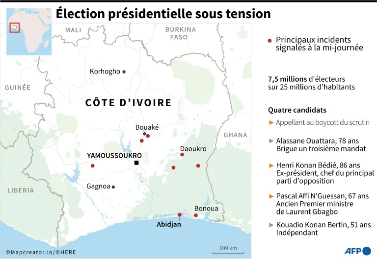 Avant le scrutin, une trentaine de personnes étaient mortes dans des violences depuis l'annonce en août de la candidature du président Ouattara à un troisième mandat que l'opposition juge "anticonstitutionnel".