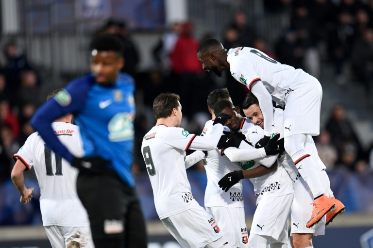 Les Rennais, de leur côté, n'ont pas vraiment souffert à Fos-sur-Mer, où ils ont pris le dessus sur l'Athlético Marseille (2-0), l'ex-GS Consolat qui a glissé en 5e division après deux rétrogradations successives. Hamari Traoré (24e) puis Raphinha (45e+1) ont assuré le coup en première période et le club marseillais, tombeur de Rodez (L2) au tour précédent, ne s'en est pas relevé. Le match a été interrompu à deux reprises, la première fois pour des fumigènes craqués et la seconde pour des jets de bouteille.