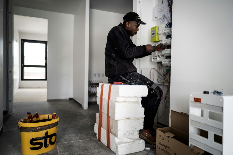 Imprégné du plâtre blanc de la résidence de cinq étages - "vendue sur plans" - qui bientôt accueillera des actifs ne rechignant pas à faire deux heures de route quotidiennes pour aller travailler en Suisse, Houssame Boinali s'affaire au câblage d'un tableau électrique, un métier "appris sur le tas".