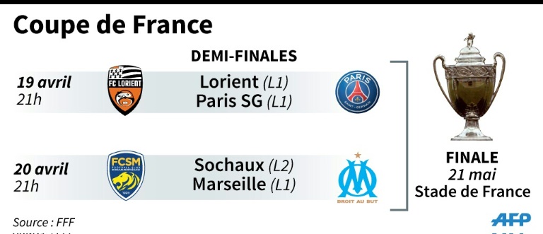 Le Paris SG entend se qualifier pour la finale de la Coupe de France mardi (21h00) face à Lorient pour défendre son titre, tandis que son rival marseillais, en plein marasme, espère s'offrir l'espoir d'un titre mercredi (21h00) face à Sochaux dans l'autre demi-finale.