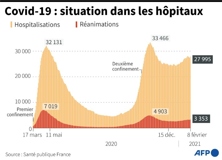 Mais des épidémiologistes craignent que le variant britannique provoque un rebond trop fort de l'épidémie, alors que la charge hospitalière est déjà élevée. Environ 28.000 malades du Covid-19 étaient hospitalisés lundi, dont plus de 3.300 en réanimation, alors que 7.000 malades se trouvaient dans ses services au pic de la 1ère vague, le 8 avril, et 4.900 au pic de la seconde, le 16 novembre.