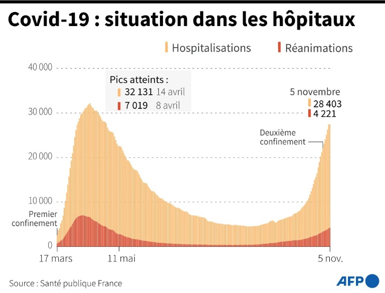 Au niveau national, 4.221 malades du Covid-19 se trouvaient en services de réanimation jeudi, sur une capacité totale et toutes pathologies confondues portée de 5.000 à 6.400 lits et qui devrait bientôt passer à 7.500.