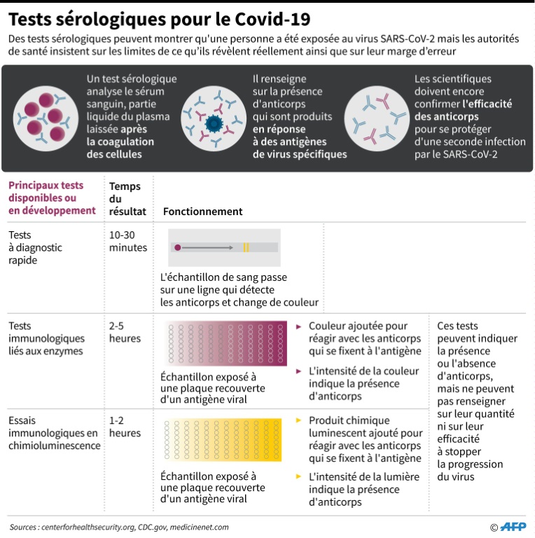 Cette étude "tranche la question", juge François Blanchecotte, président du Syndicat des biologistes (SDB), estimant que les tests sérologiques répondent à un vrai besoin pour accompagner le déconfinement de tous ceux qui travaillent en collectivité. "Mais qu'est ce que cette information va m'apporter à titre individuel?", interroge le Pr Pierre Tattevin, infectiologue au CHU de Rennes.