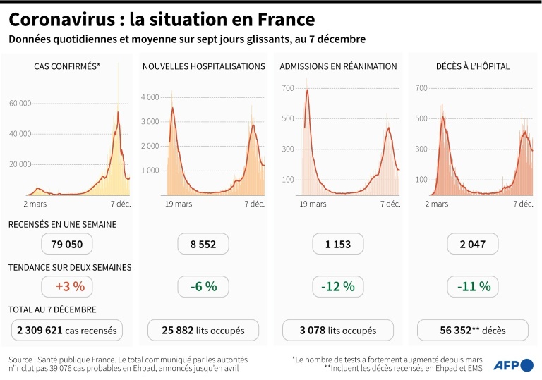 Depuis une semaine les nouveaux cas ne diminuent plus, 14.000 nouveaux ont été diagnostiqués en 24 heures. "Le relâchement collectif, un brassage plus important de la population, mais aussi le facteur climatique" jouent sur cette situation de plateau. "Nous n'atteindrons pas les 5.000 cas par jour au 15 décembre". Les vacances et les fêtes de fin d'années vont augmenter le nombre de cas.
